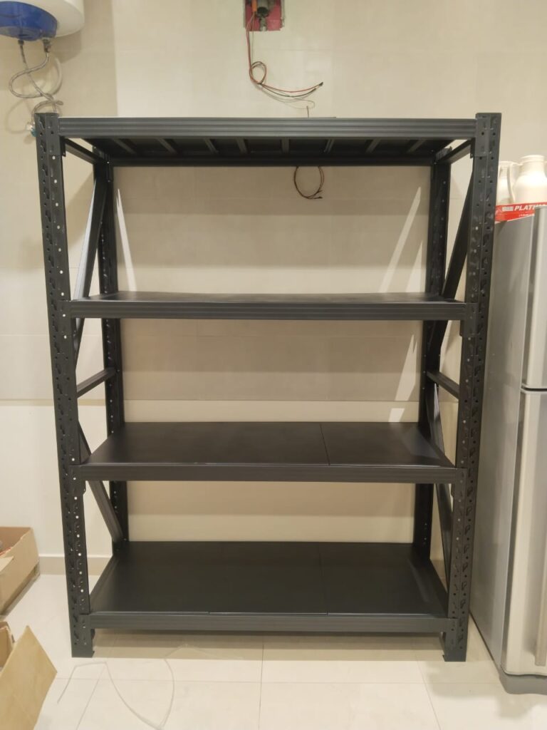 رفوف مستودعات حمولة 300 كيلو على كل رف لا يحتاج براغي او مسامير او تثبيت على الجدار سهل الفك والتركيب